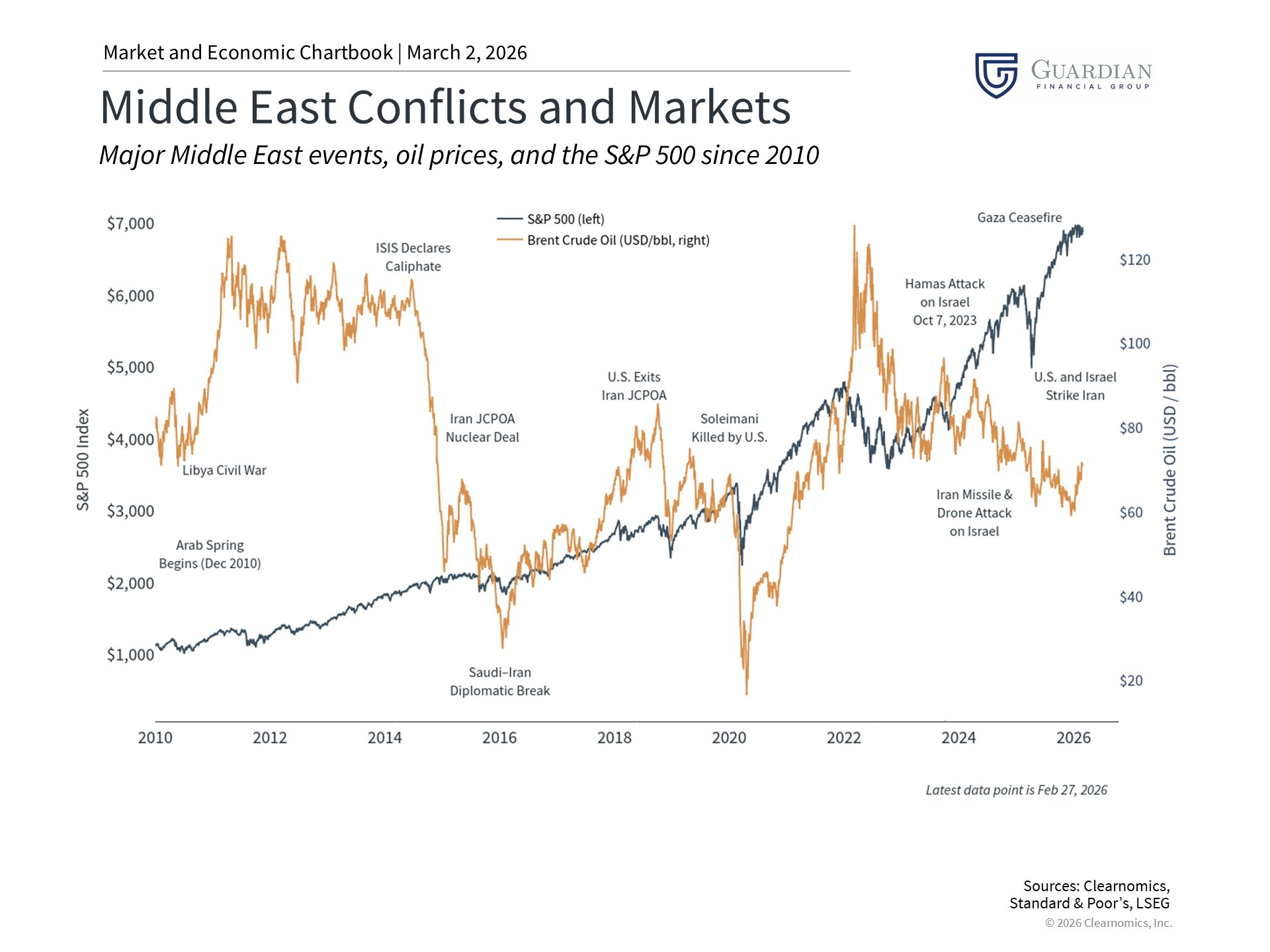 The situation continues to develop rapidly, and the safety of civilians in the region and U.S. troops remains the foremost concern. Without diminishing the gravity of these events, investors will understandably have questions about the implications for markets, oil prices, and their portfolios.